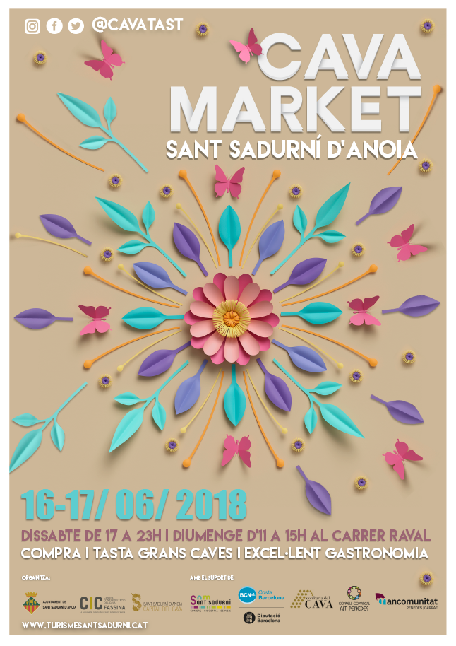 El cap de setmana del 16 i 17 de juny torna una nova edició del Cavamarket. Dissabte a partir de les 17h, més d'una trentena de cellers i empreses gastronòmiques, es concentraran al carrer Raval i posaran a la venda els seus productes. Vine i compra el teu cava de Sant Sadurní per a les revetlles! Per a tots aquells visitants que vulguin tastar els caves abans de comprar-los trobaran un estand de venda de copes i podran degustar els caves a un preu força assequible.