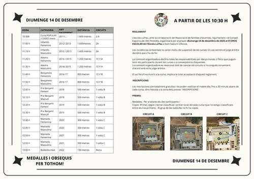 Les incidències ambientals no seran motiu de suspensió de les curses. Les inscripcions són totalment gratuïtes i es poden realitzar el mateix dia a l'escola, fins a 30 minuts abans de cada cursa.