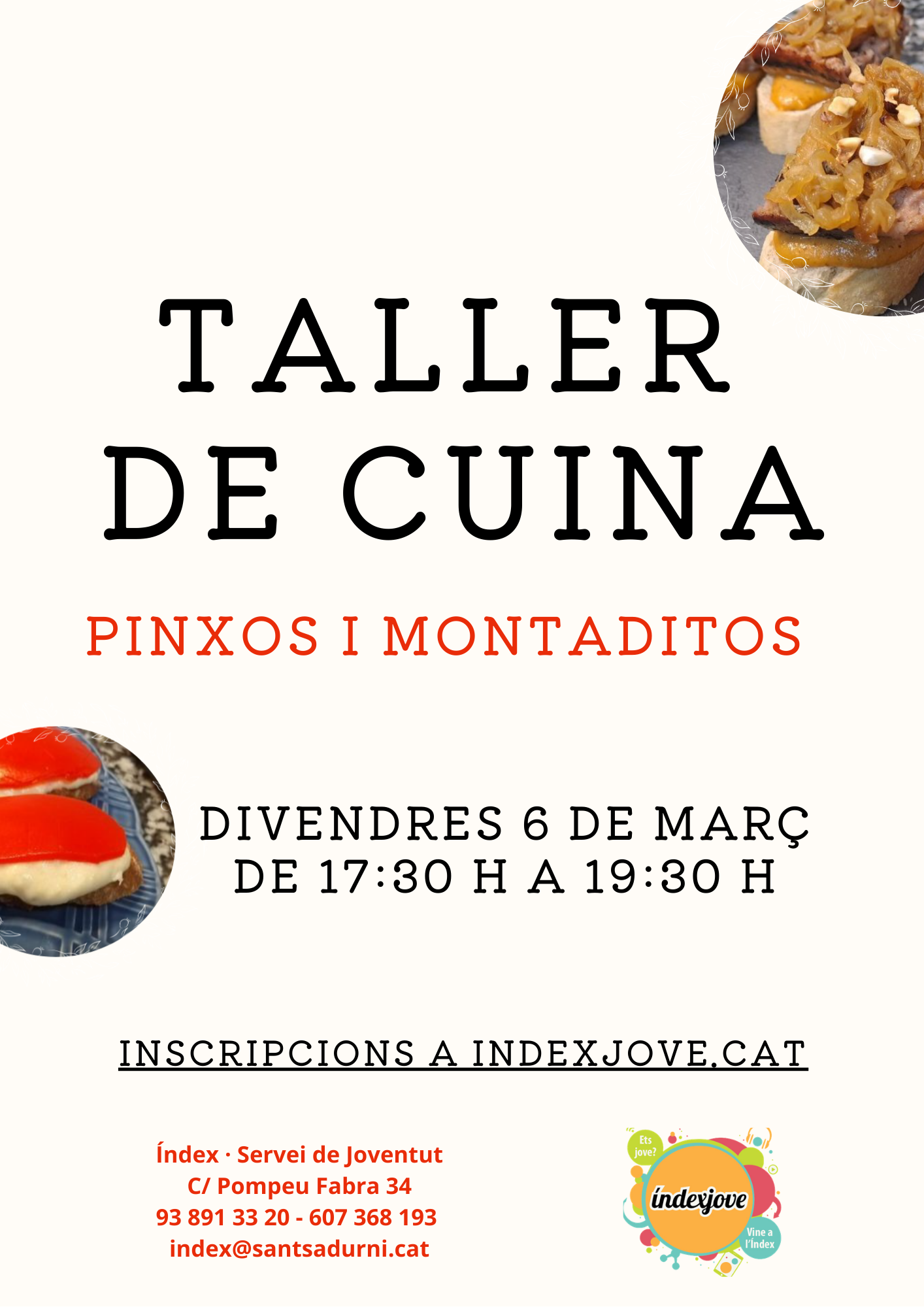 6 de març -Taller de cuina: Pinxos i montaditos. A les 17.30 h (cal inscripció prèvia)