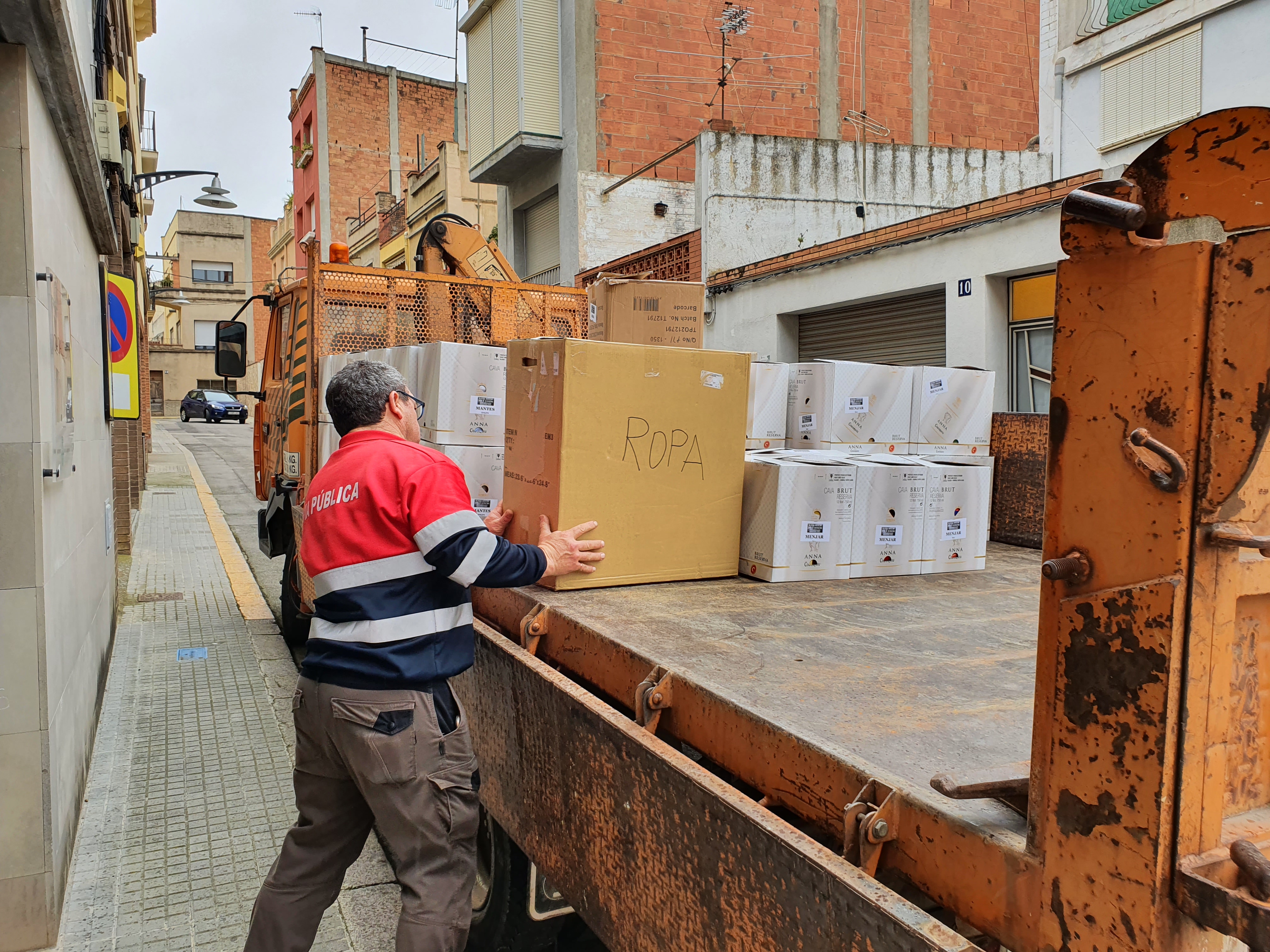 Aquest dijous al matí treballadors del servei de Via Pública han traslladat fins a Codorniu 120 caixes de material de primera necessitat que els veïns i veïnes han fet arribar al Casal d'Entitats per ajudar el poble ucraïnes: roba d'abric, mantes, medicaments i productes de primera necessitat.