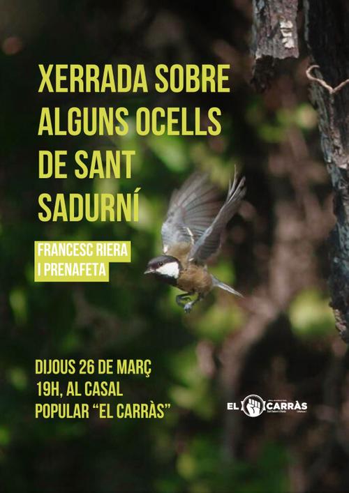 El Francesc Riera ens farà un repàs pels diferents ocells que es poden veure pels voltants de Sant Sadurní, per poder conèixer millor la fauna del nostre municipi.